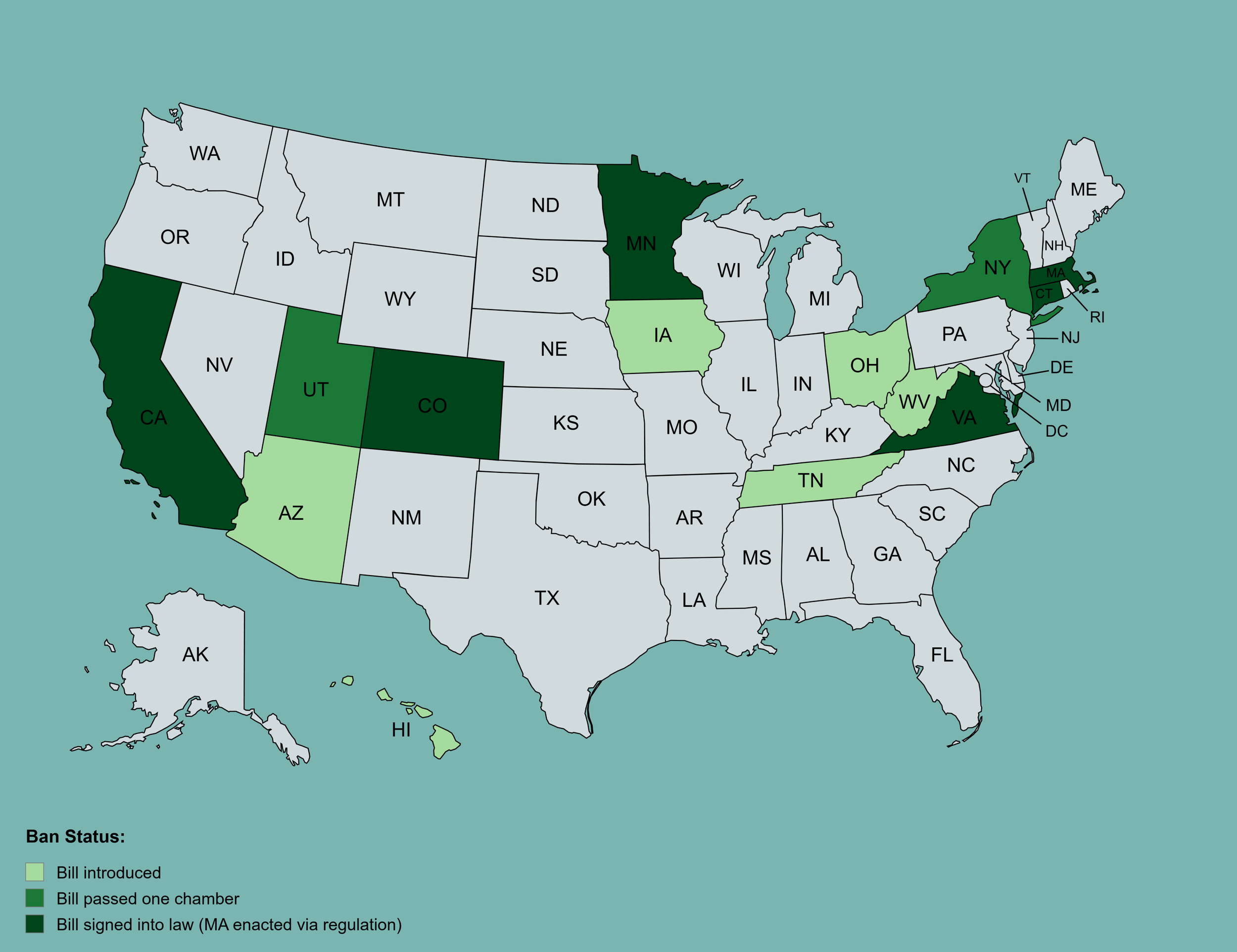 Colorado approved a ban in April 2025 that goes into effect in January 2026.